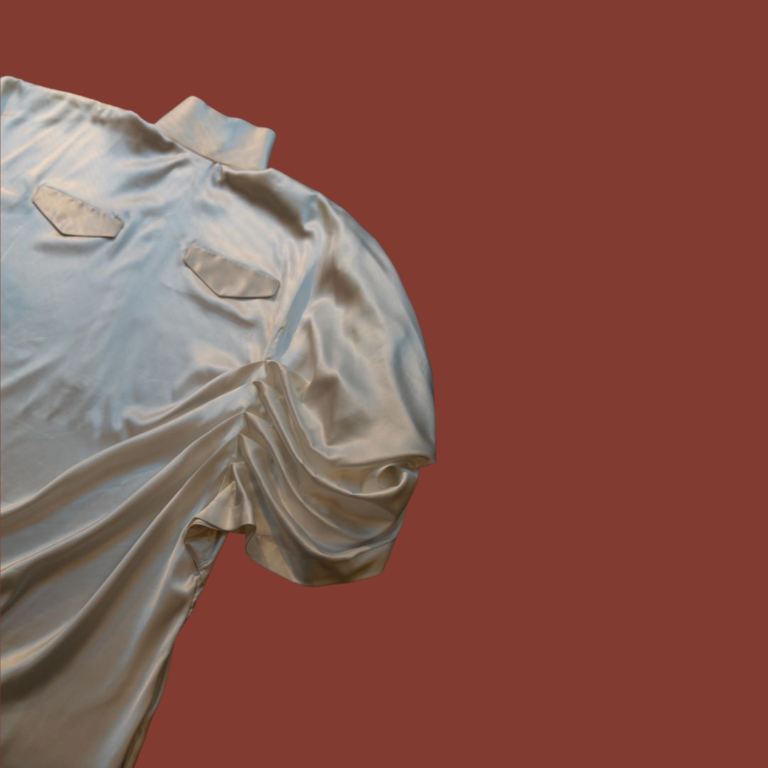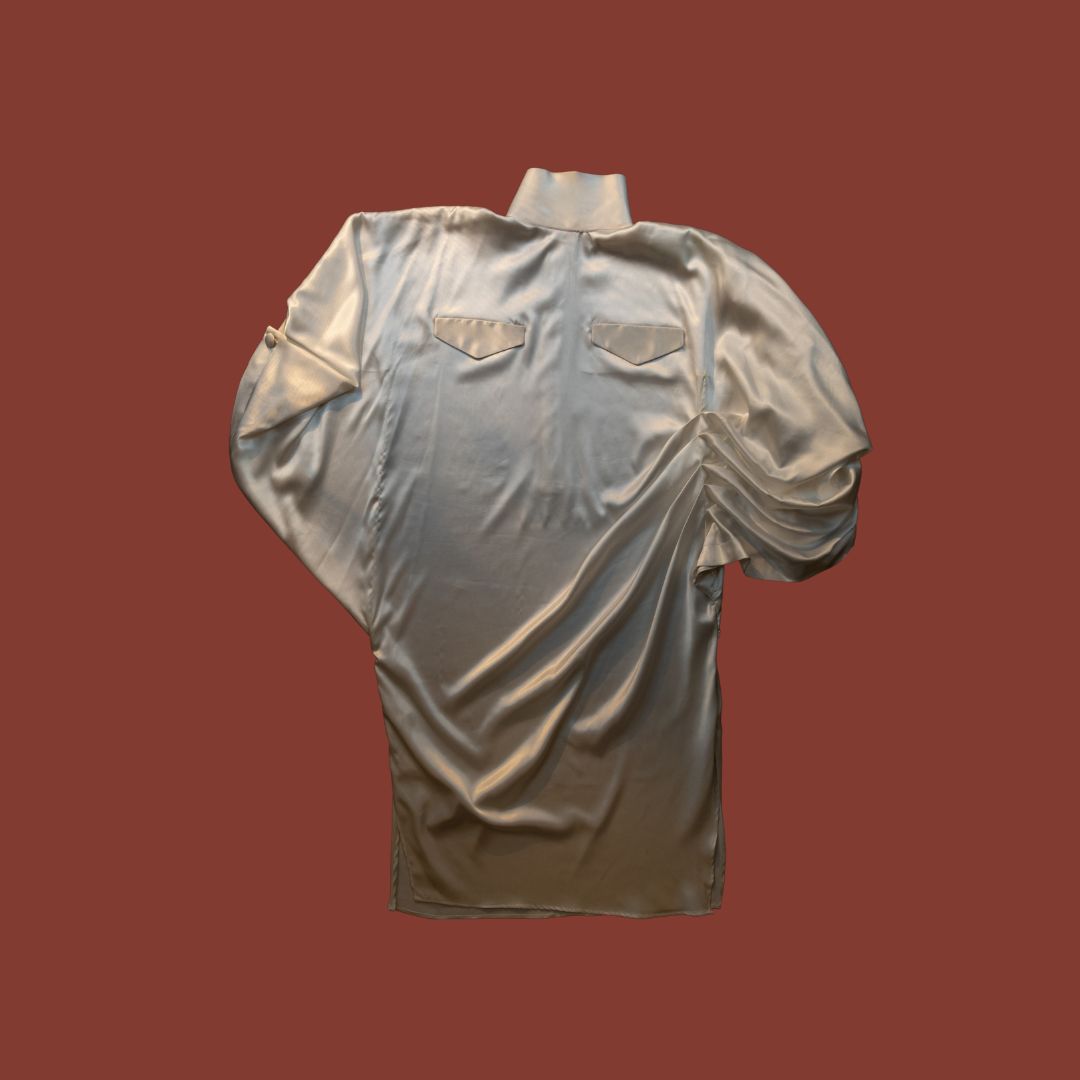 Our luxury silk piece with cowl detail on the sleeves. We totally love how the cowls flow across it's straight silhouette.